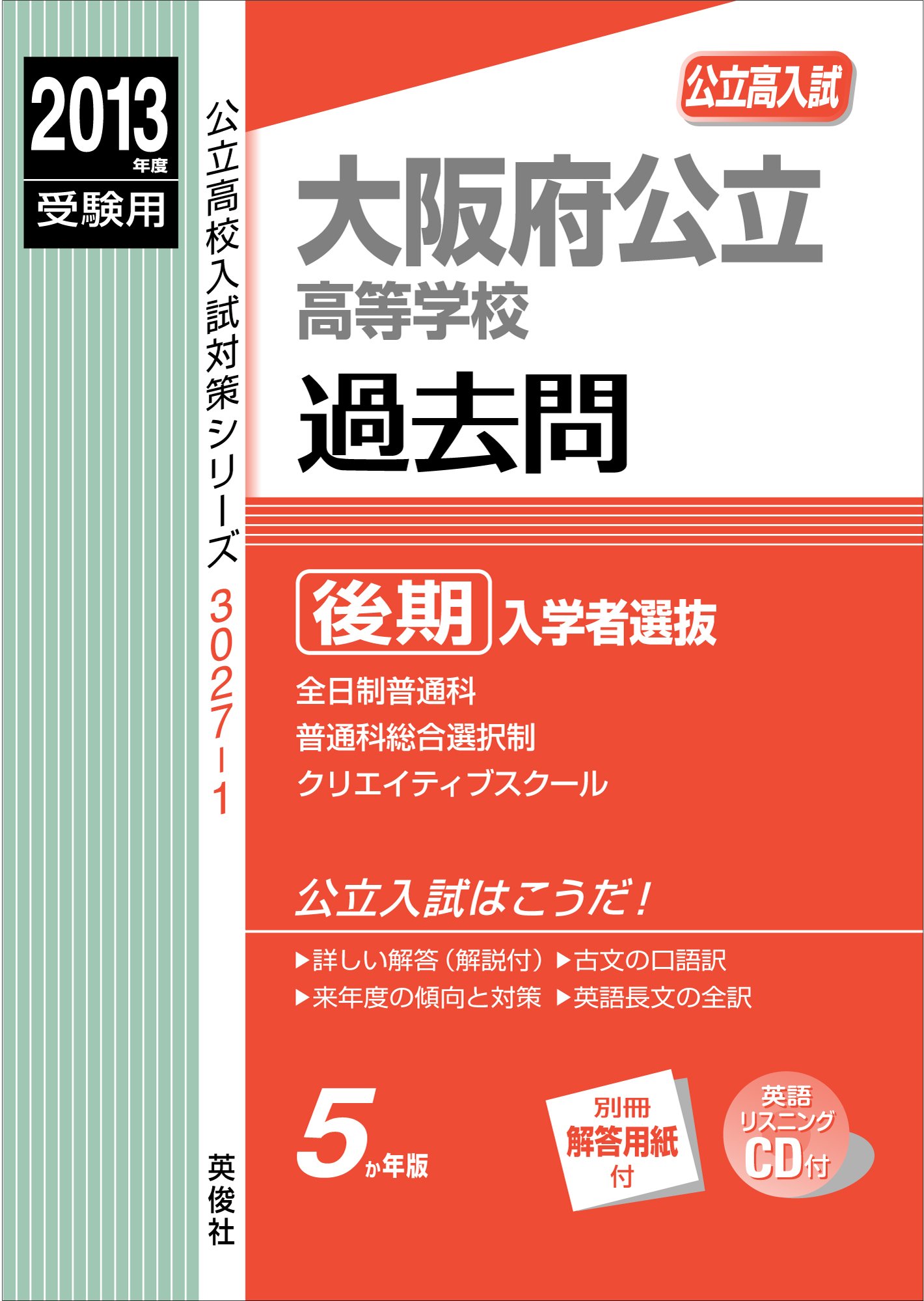 大阪府公立高等学校 後期入学者選抜 2013年度受験用 赤本30271 (公立高校入試対策シリーズ リスニングCD付)